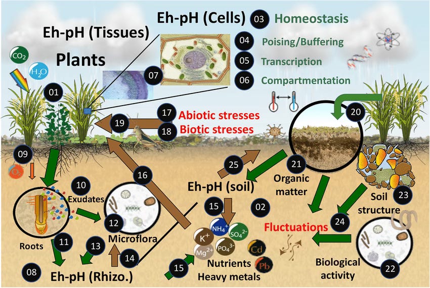 Husson, O. (2013). Redox potential (Eh) and pH as drivers of soil/plant/microorganism systems: a transdisciplinary overview pointing to integrative opportunities for agronomy. Plant and Soil, 362(1), 389-417.